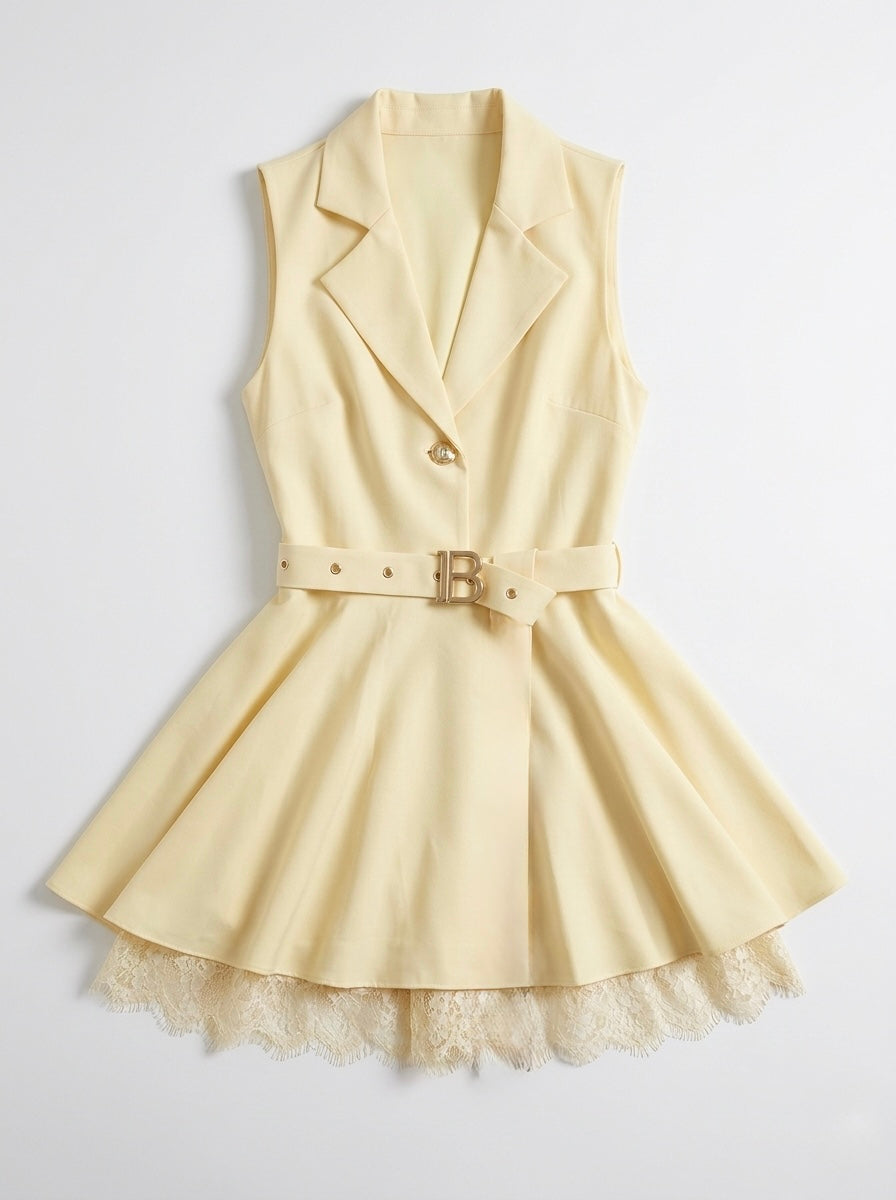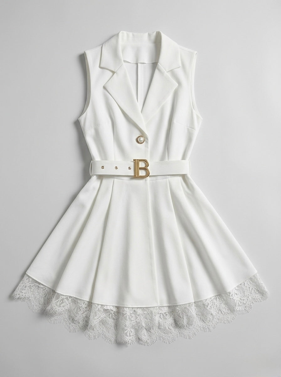 Елегантен гащеризон с колан и дантелен акцент